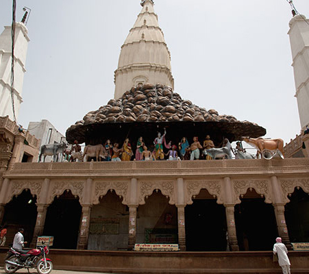 Located about 22 kilometres from Mathura, Govardhan is a key pilgrimage centre, comprising of many temples in the town. It is mainly famous for its 21 kilometres long Parikrama (going around the path) of the Govardhan hill.